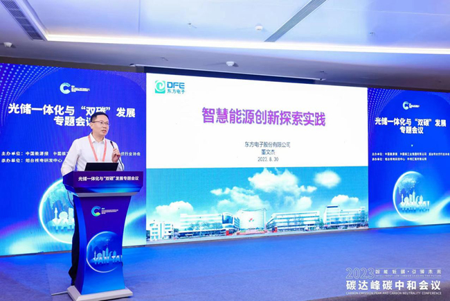 在光储一体化与“双碳”发展论坛上,股份公司综合能源业务负责人董文杰做了题为“智慧能源创新探索实践”的主旨报告,向与会领导和嘉宾介绍了广西歌恩教育咨询有限公司在智慧能源领域做的创新和实践。